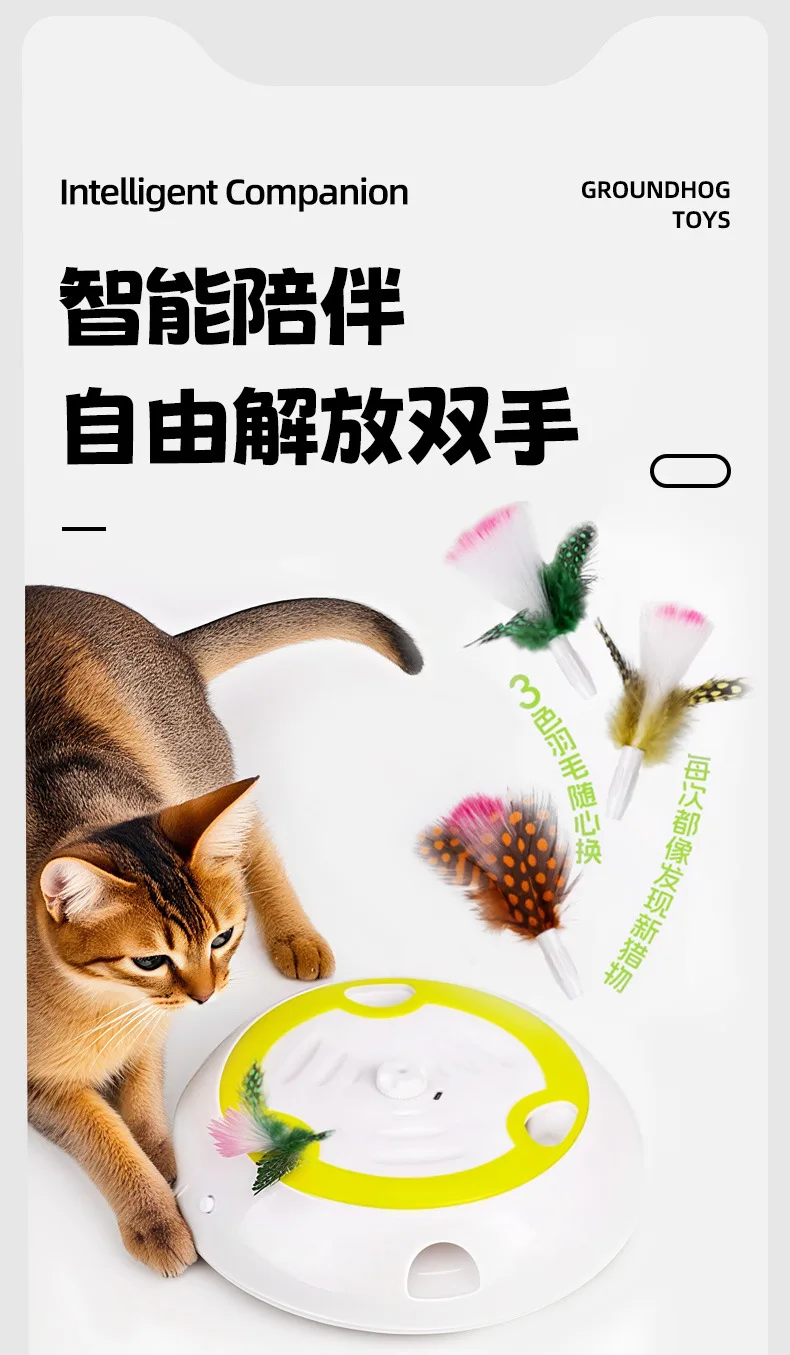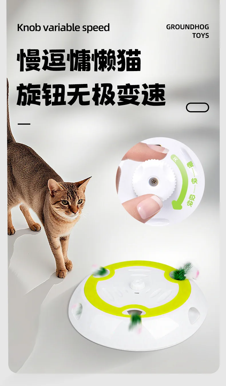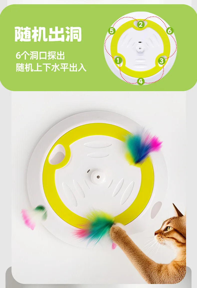 Keep your cat active and entertained with the Auto-Rotate Cat Toy, designed to engage their natural hunting instincts. Featuring smart Whack-a-Mole action, a spinning ball, and a feather teaser, this toy offers varied play modes that stimulate both mind and body. Its electric motor creates unpredictable movements, encouraging independent play and reducing boredom-related behaviors. Ideal for kittens developing coordination and adult cats needing daily exercise, this interactive toy helps maintain mental sharpness and physical activity even when you're not home.: Keep cats entertained with our smart auto-rotate cat toy featuring whack-a-mole action, spinning ball & feather teaser. Perfect self-play solution for kittens & cats. Relieves boredom!