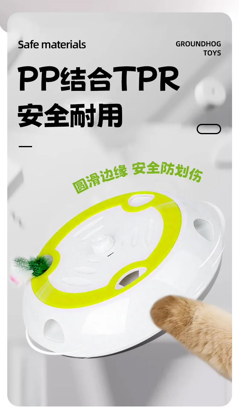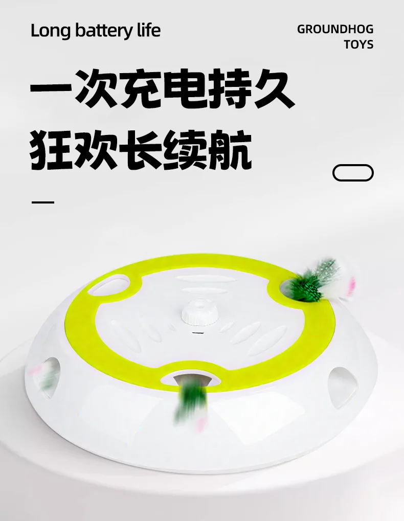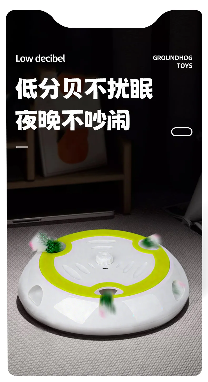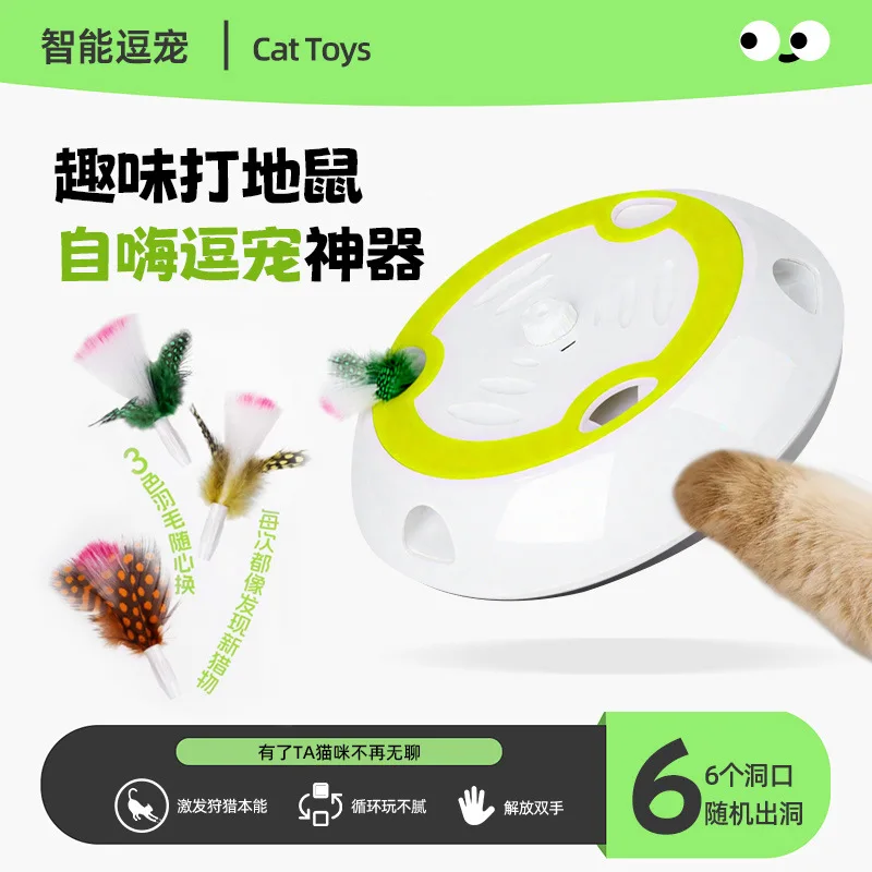 Keep your cat active and entertained with the Auto-Rotate Cat Toy, designed to engage their natural hunting instincts. Featuring smart Whack-a-Mole action, a spinning ball, and a feather teaser, this toy offers varied play modes that stimulate both mind and body. Its electric motor creates unpredictable movements, encouraging independent play and reducing boredom-related behaviors. Ideal for kittens developing coordination and adult cats needing daily exercise, this interactive toy helps maintain mental sharpness and physical activity even when you're not home.: Keep cats entertained with our smart auto-rotate cat toy featuring whack-a-mole action, spinning ball & feather teaser. Perfect self-play solution for kittens & cats. Relieves boredom!